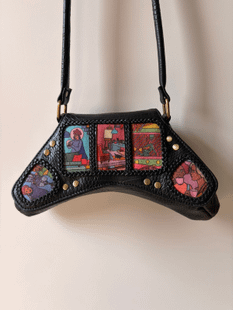 This cute bag is inspired by a controller and the prints are made by Priyanka Paul (insta- @artwhoring)